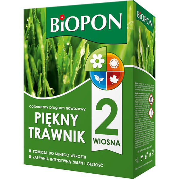 Krok nr 2 - WIOSNA odpowiada za intensywny rozwój i gęste zadarnienie trawnika. Nawóz wiosenny zawiera dużą ilość azotu, dzięki czemu trawa zaczyna szybko rosnąć oraz nabiera soczyście zielonego koloru i sprężystości. Intensywny wzrost trawy zapewnia murawie piękny i zdrowy wygląd, a dodatkowo ogranicza rozrastanie się chwastów oraz podnosi odporność trawnika na deptanie.