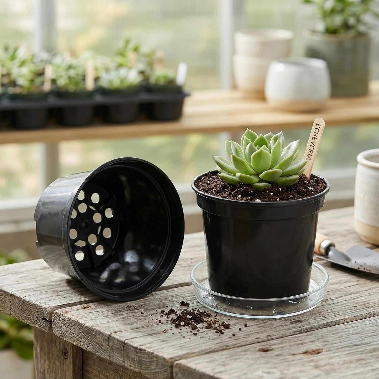 Doniczka produkcyjna czarna została zaprojektowana z myślą o wygodzie i funkcjonalności. Odpowiedni kąt nachylenia ścianek sprawia, że rośliny można łatwo wyjąć, co znacząco przyspiesza proces przesadzania oraz minimalizuje ryzyko uszkodzeń korzeni. Dzięki temu doniczka do roślin 1,5 l idealnie sprawdza się zarówno w profesjonalnych szkółkach, jak i w przydomowych uprawach, gdzie liczy się jakość i precyzja.