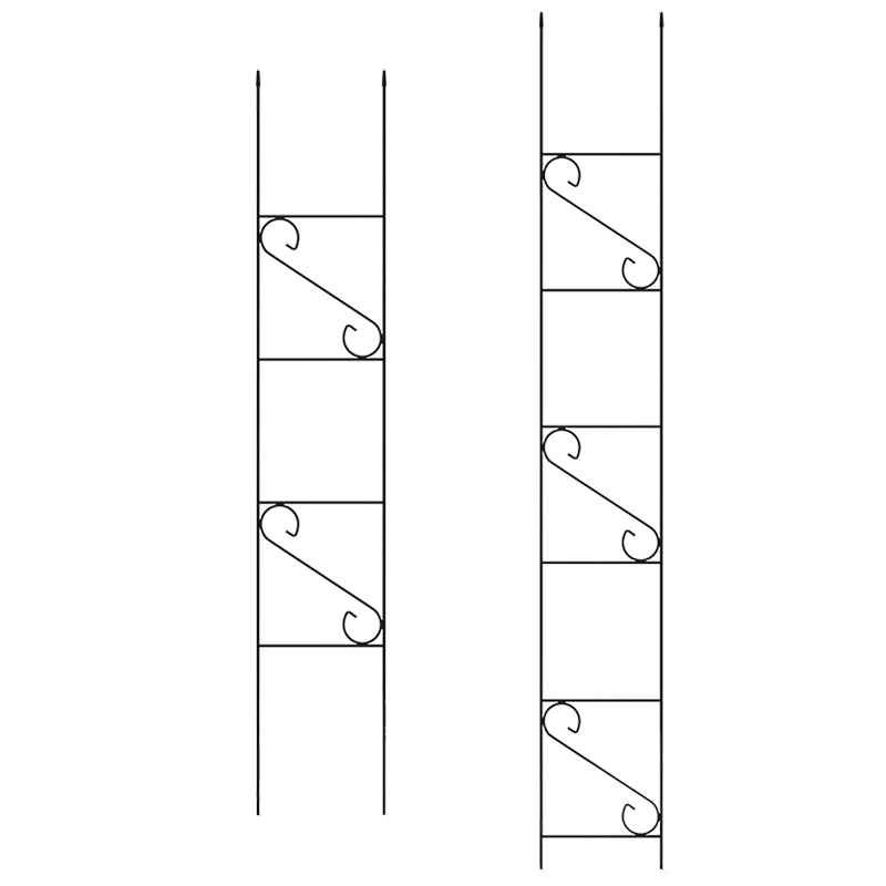 Drabinki to wysokie konstrukcje wspomagające wzrastające rośliny pnące w naszym ogrodzie. Wykonane zostały ze stali, a następnie malowane proszkowo na kolor czarnego matu. Drabinki dostępne w dwóch rozmiarach M oraz L. Świetnie wyglądają pojedynczo, lecz również mogą stanowić ciekawą dekorację ogrodu. Montaż drabinek jest banalnie prosty i jest w stanie go wykonać jedna osoba.