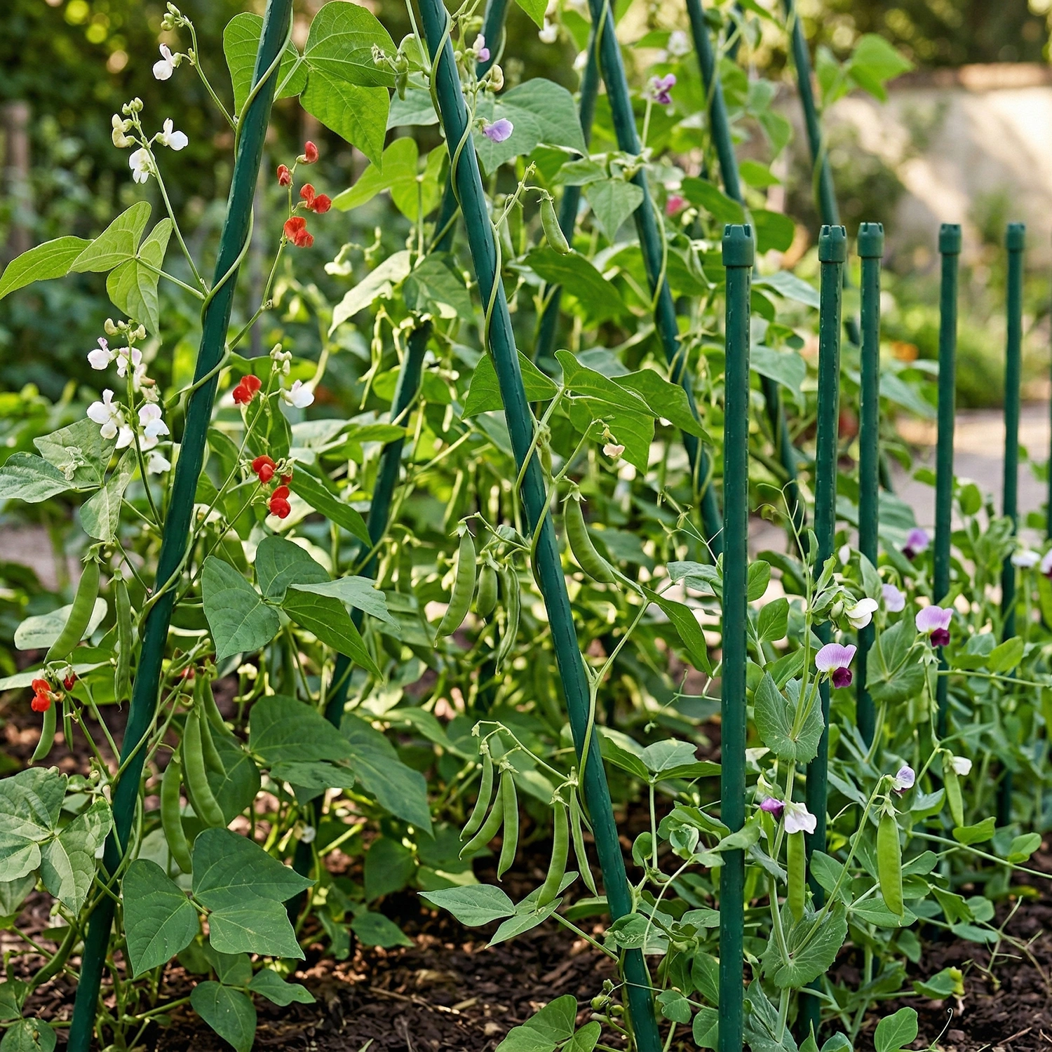 Tyczka sprawdzi się przy ogórkach, fasoli, kwiatach ozdobnych oraz roślinach pnących.
