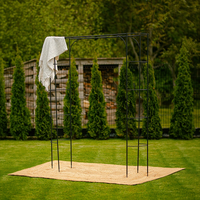 ta elegancka pergola w czarnym kolorze zapewnia zarówno praktyczność, jak i styl.