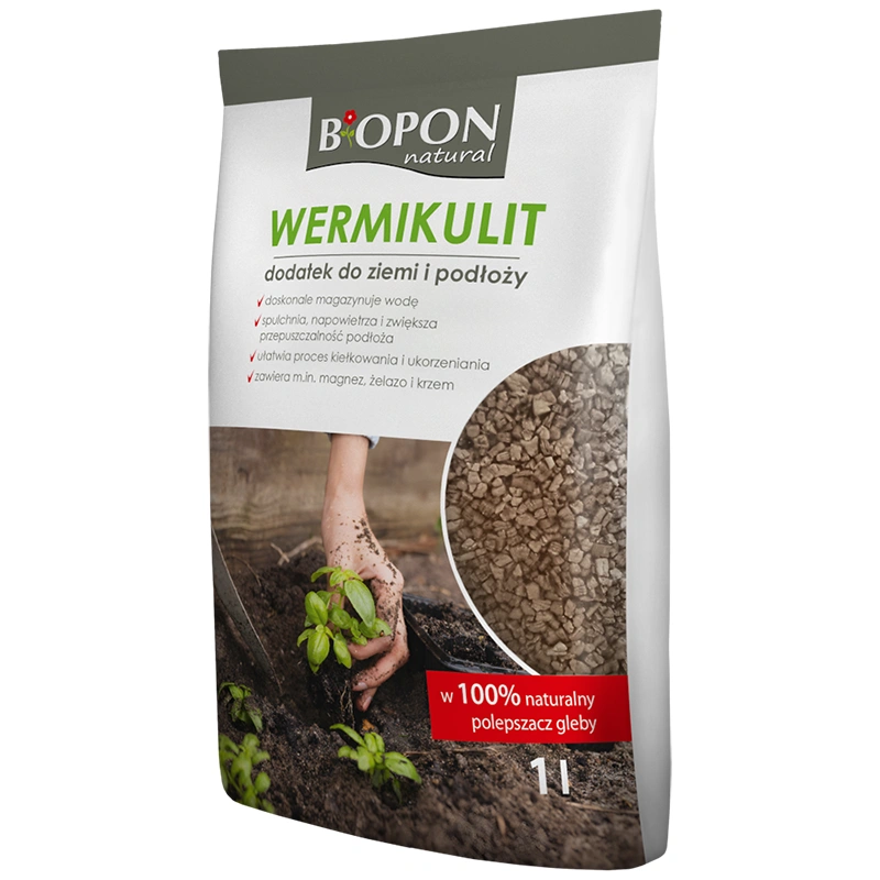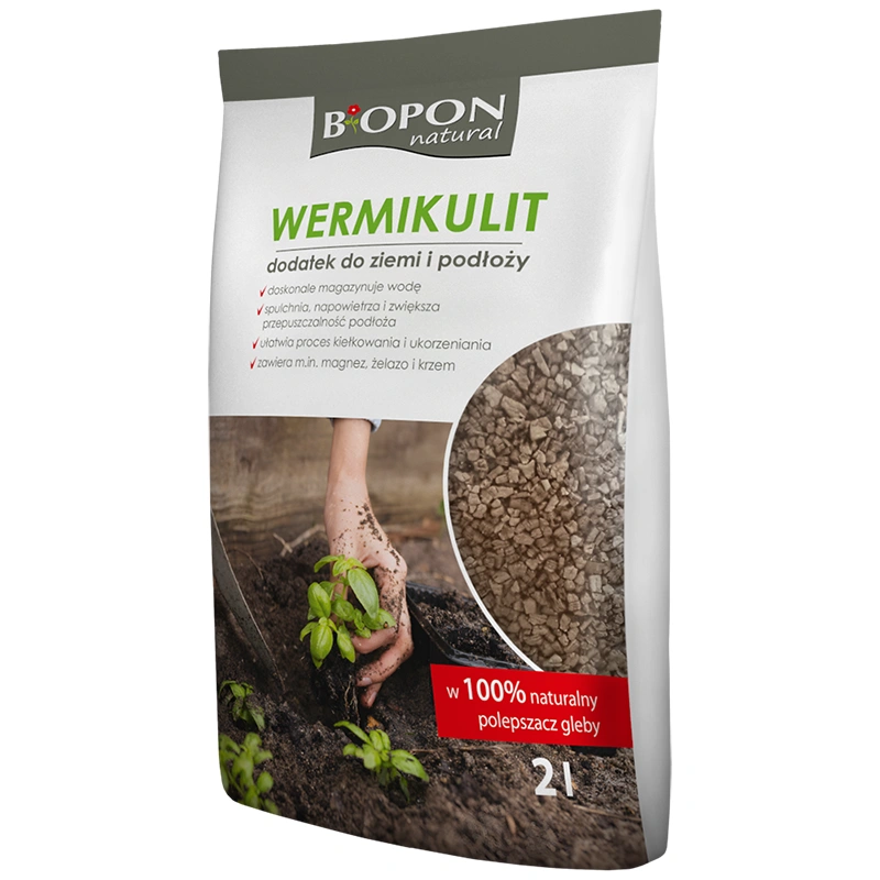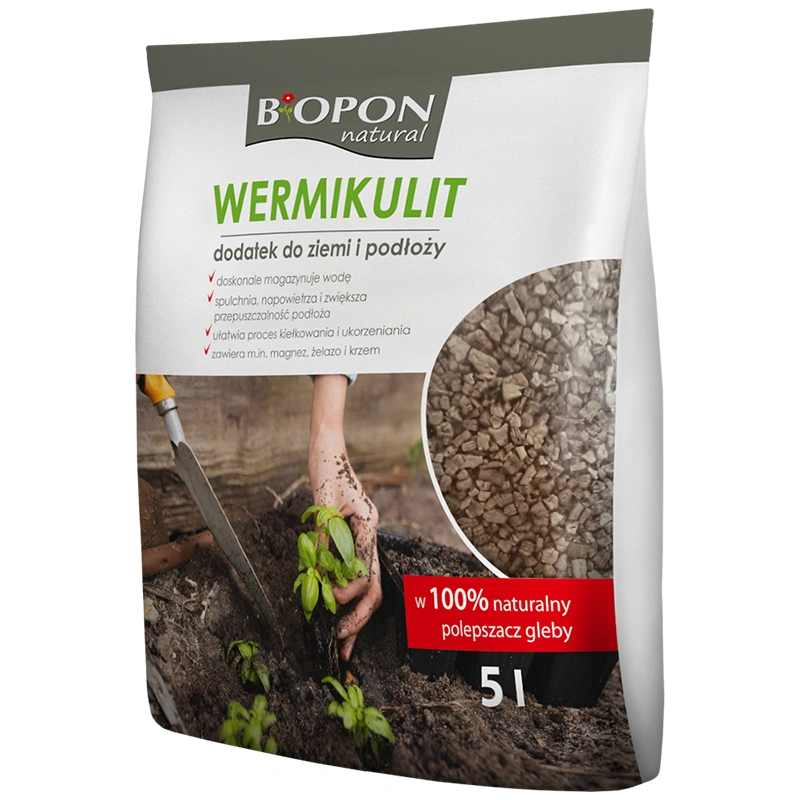 Wermikulit to naturalny produkt poprawiający właściwości podłoża, uzyskiwany w wyniku obróbki termicznej ilastego minerału o warstwowej strukturze. Ma postać lekkich, porowatych granulek o wysokiej zdolności zatrzymywania wody. Jest cenionym dodatkiem do podłoży ogrodniczych ze względu na właściwości spulchniające i napowietrzające. Dzięki jego zastosowaniu gleba staje się bardziej przepuszczalna i przyjazna dla systemu korzeniowego.