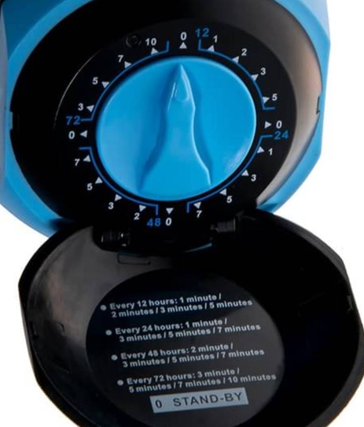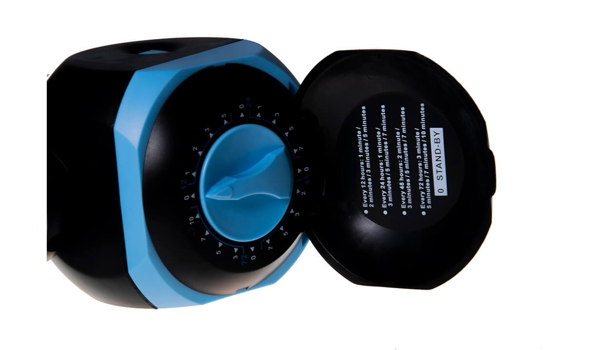 Sterownik nawadniania, dzięki któremu bez problemu ustawisz jak długo ma podlewać i co jaki czas. Posiada zegar do ustawiania krótkiego otwarcia zaworu nawadniania. Urządzenie posiada wskaźnik zasilania baterii, sygnalizujący poziom baterii.